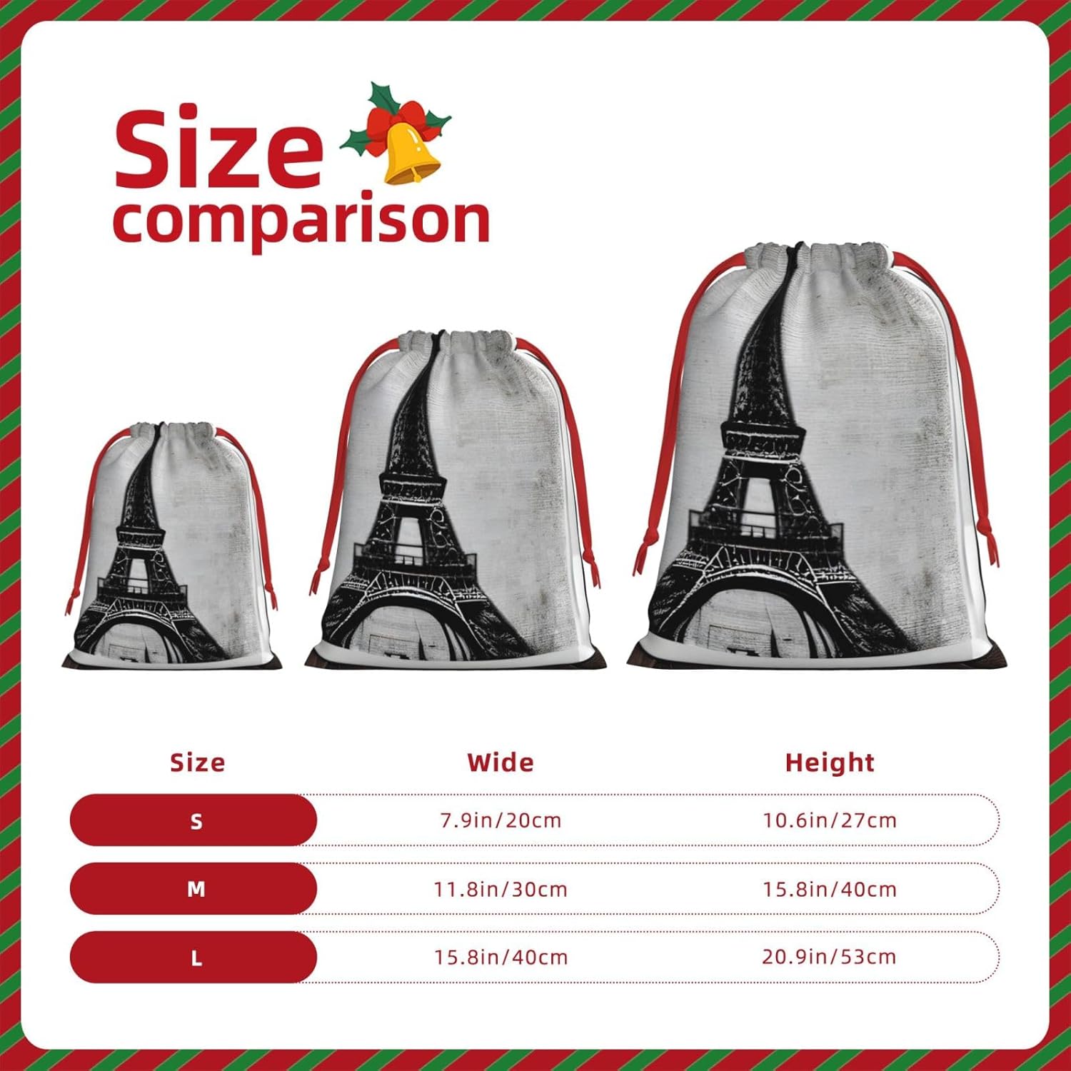 Multiple Sizes And Large Capacity: These Parisian Coffee Eiffel Tower Print Holiday Drawstring Gift Bags Are Available In Three Sizes,Large 15.8″ X 20.9″, Medium 11.8″ X 15.8″ And Small 7.9″ X 10.6″, Perfect For Holding Various Items Like Gift Cards, Candies, Chocolate Bars, Small Toys, And More.