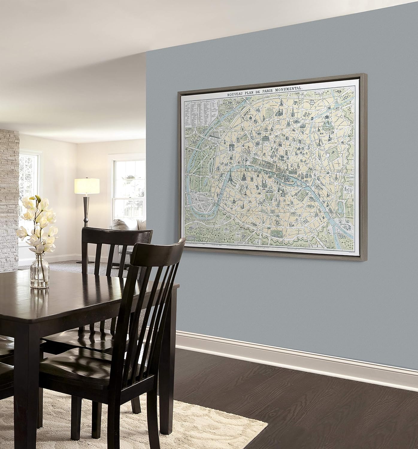 Write an interesting inspirational review article about Kate and Laurel Sylvie Nouveau Plan De Paris Monumental Map Framed Canvas Wall Art by Corinna Buchholz of Piddix, 28×38 Gray,beautifully written,thousand words,also talk BEST AMAZON FINDS