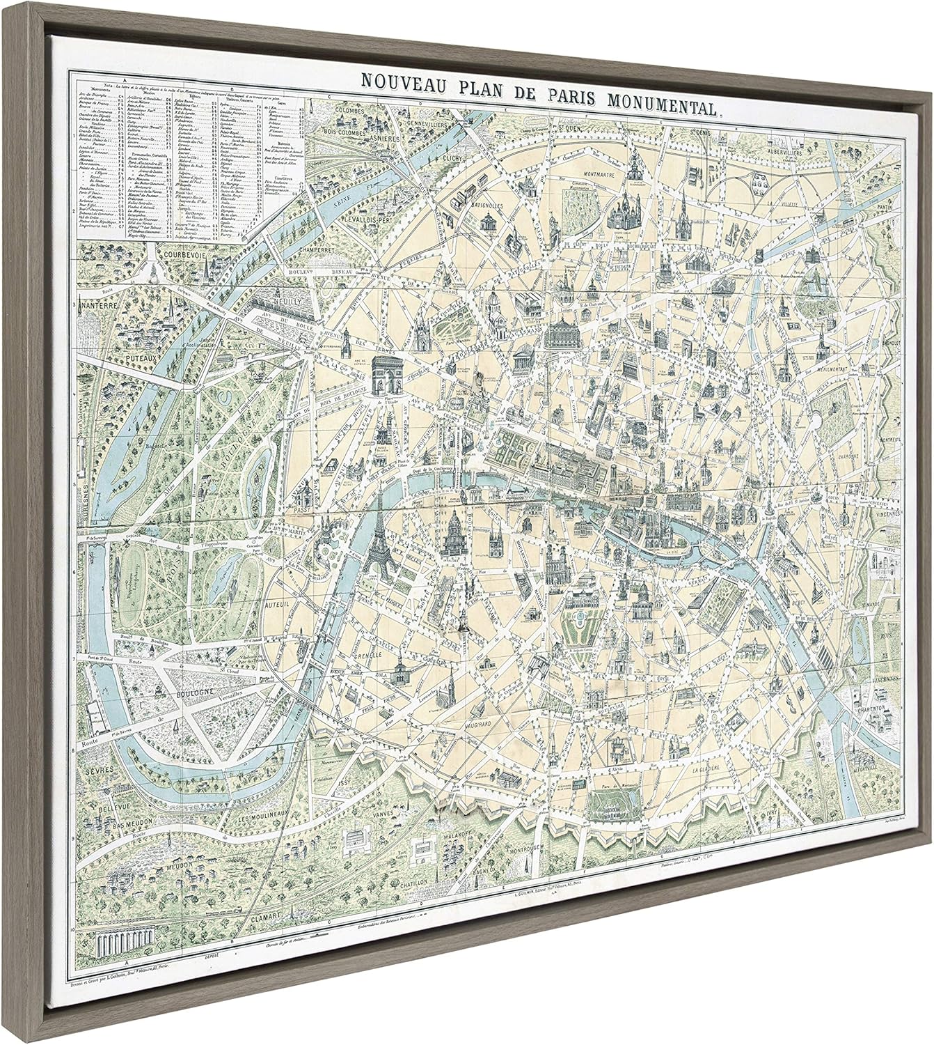 BEST AMAZON FINDS Discount $101.74 Exclusive Kate and Laurel Sylvie Nouveau Plan De Paris Monumental Map Framed Canvas Wall Art by Corinna Buchholz of Piddix, 28×38 Gray on Amazon