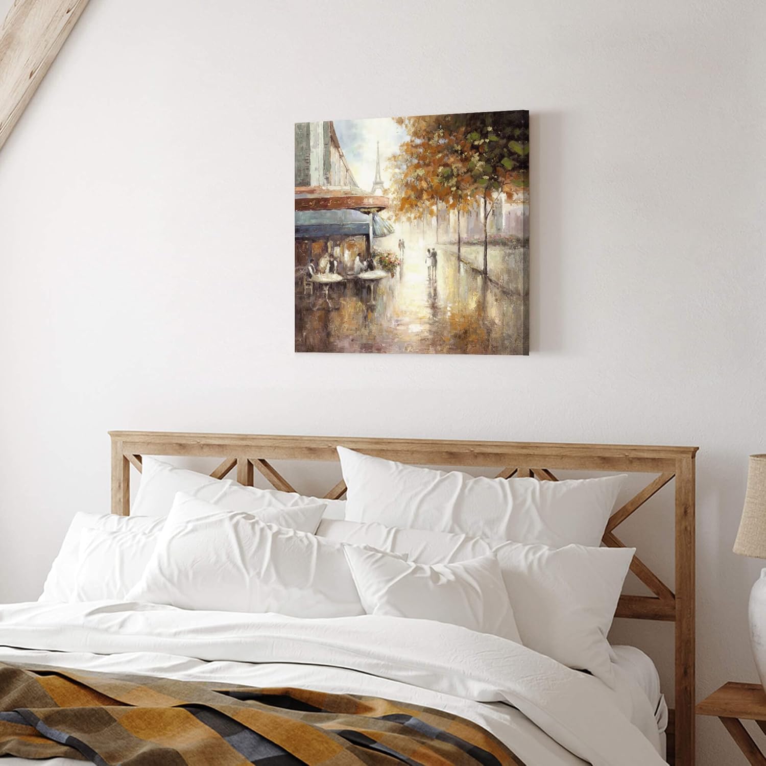 Our city street view Eiffel tower print wall art painting is full of vitality. This romantic Eiffel tower paintings wall art for bedroom combines with a nice-crafted frame to create a sense of completion and a noble feeling for you when displayed on the wall. The romantic city street bedroom wall art will bring vibrant colors to the wall and make you immerse yourself in a relaxing vibe.