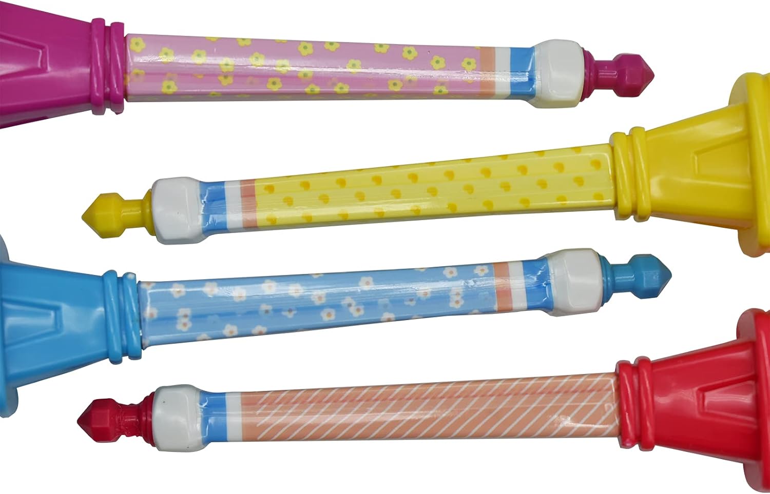 尺寸:长度 – 5.5 英寸(14 厘米);4 种颜色:蓝色、黄色、红色、玫瑰红;墨水颜色 – 黑色,0.5 毫米细点;材质 – 硬质塑料。