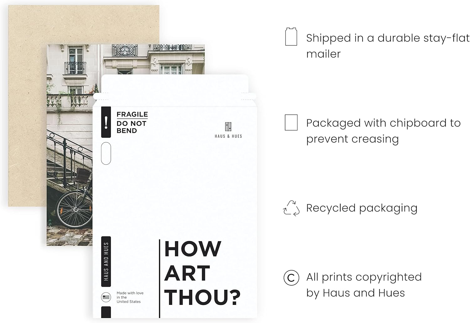 顶级品质和包装:Haus & Hues 支持全球艺术界。我们只使用微喷印刷,它远远优于所有其他印刷形式,因为它的颜色保持时间比任何标准印刷品都长得多。每幅艺术印刷品均印在优质档案亚麻纸上,无酸且防褪色。我们的 12 英寸 x 16 英寸巴黎艺术印刷品采用纸板垫包装,以防止折痕和凹痕,然后用牛皮纸自封 StayFlats 运输,以在运输过程中保护您的艺术品