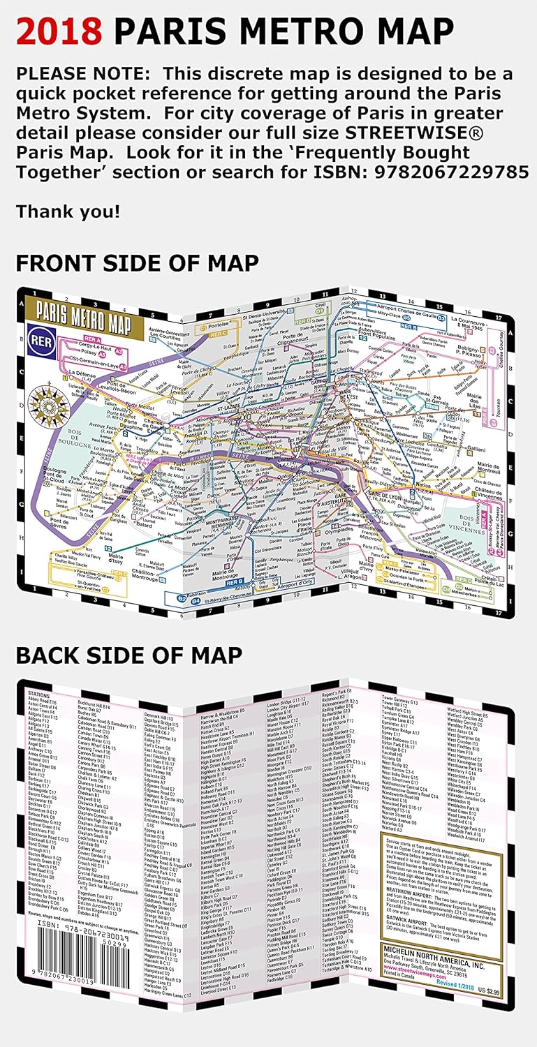 Review: These maps are dead useful. I Purchased a new one each year before I travel to Paris because the metro system has minor changes each year. This fits nicely in the pocket of my purse or in the pocket of my jeans. The only negative is that as my eyes get older it is getting harder to see the tiny print. My mom, is 78 years old, stores hers in the pocket with her reading glasses so this is an issue.