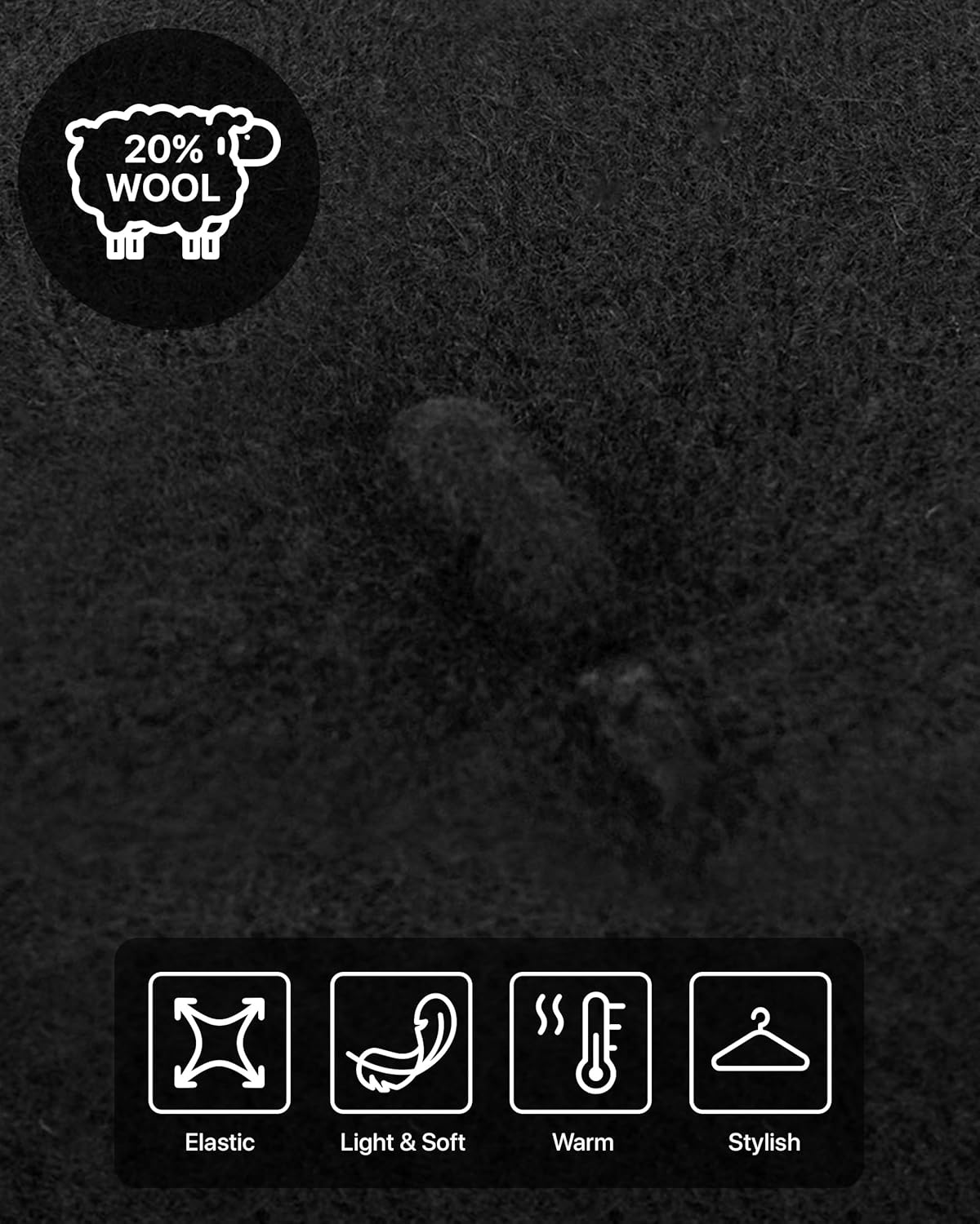 Made with 20% wool. This beret is a stylish and cozy accessory, perfect for adding elegance and warmth to your outfit.
