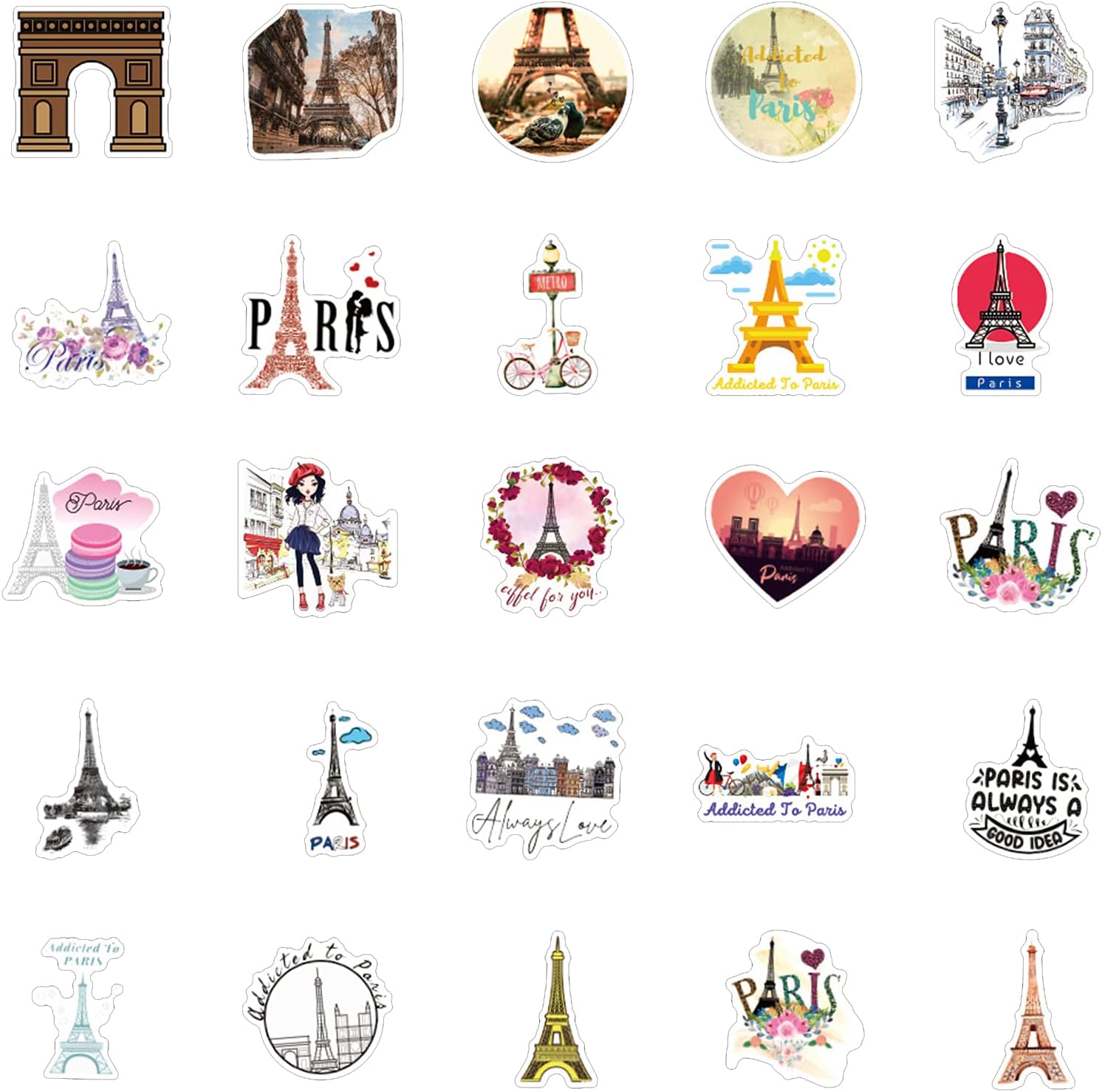 WOW $4.79 充满活力的 N&S Addicted to Paris 水瓶贴纸 50 件可爱、防水、美观、时尚青少年、女孩完美水瓶、笔记本电脑、手机、旅行超耐用乙烯基 美国亚马逊Amazon