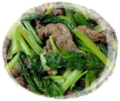 rapeseed in boiling water. After placing the sausage, bacon and rape on rice.