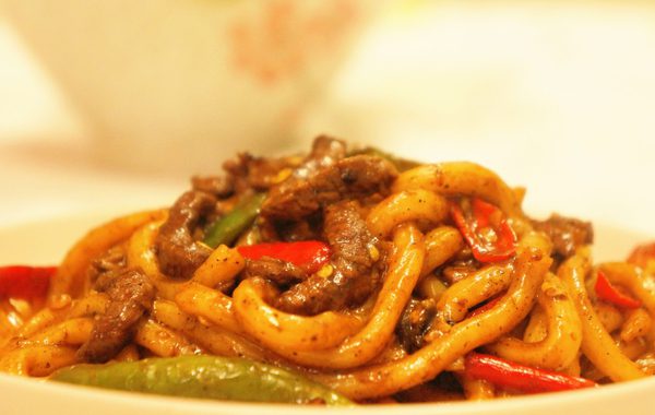 Beef udon noodles