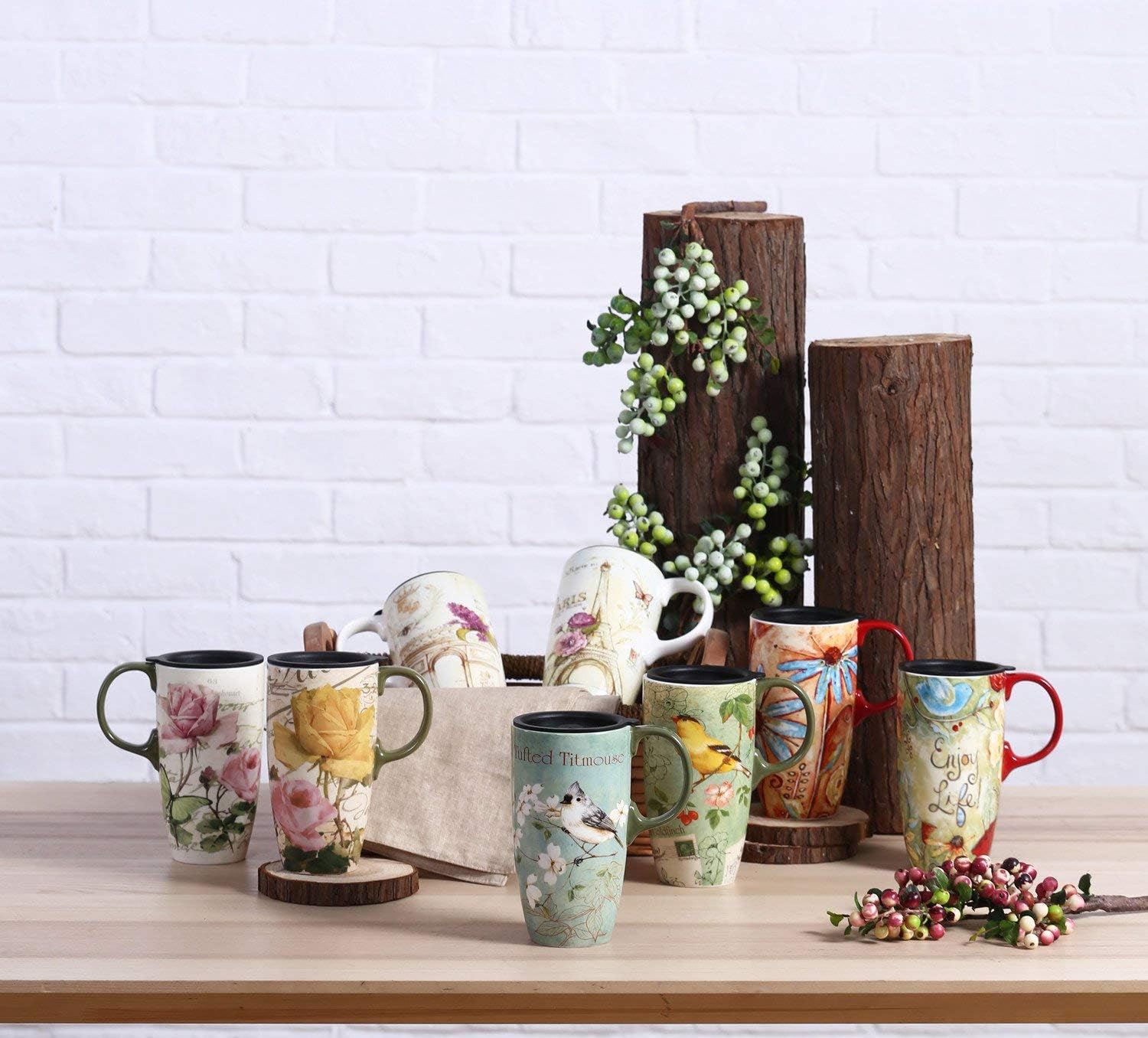 Whether drinking morning coffee at work, or sipping on a hot cup of tea at home. This unique and appealing ceramic mug will appeal to everyone! This ceramic travel mug makes a decorative and practical gift. Perfect for any occasion, this ceramic mug with matching gift box is sure to be a hit!