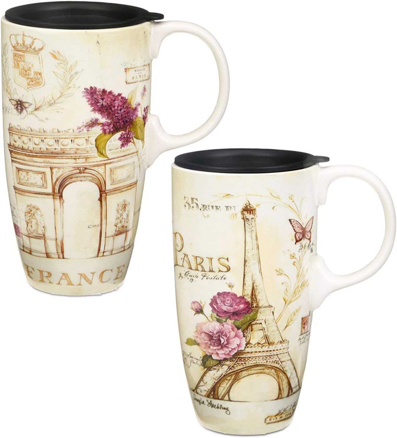 BEST AMAZON FINDS $29.99 Fashion-Forward CEDAR HOME Travel Coffee Ceramic Mug Porcelain Latte Tea Cup With Lid in Gift Box 17oz., France Eiffel Tower, 2 Pack on Amazon