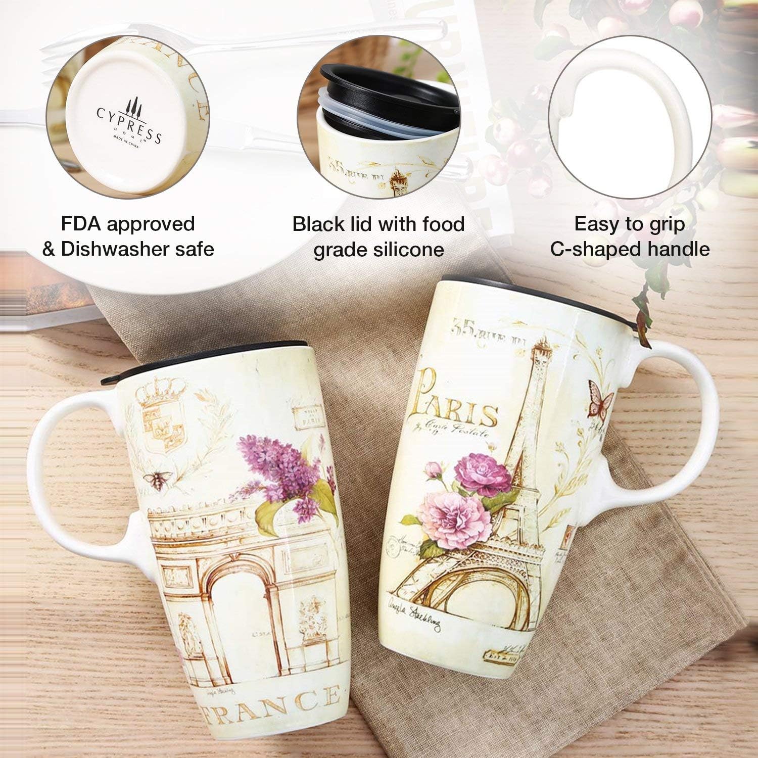 Write an interesting inspirational review article about CEDAR HOME Travel Coffee Ceramic Mug Porcelain Latte Tea Cup With Lid in Gift Box 17oz., France Eiffel Tower, 2 Pack,beautifully written,thousand words,also talk BEST AMAZON FINDS
