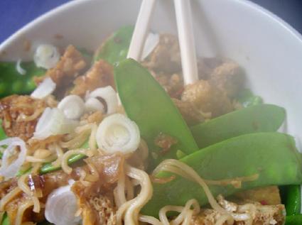 snap bags and noodles, stir well and serve in large deep bowls (eat with