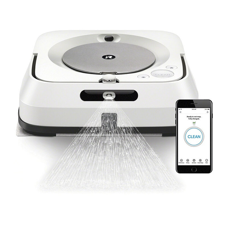 Brand: iRobot Model: Braava Jet M6 – M6134 Battery: Lithium-Ion Dimension: 27 cm x 25.2 cm x 9 cm Weight: 2.2 kg Autonomy: 2 hours Charging time: NC Remote control: app and voice control Charging station: dock type Accessories: 1 x 118ml detergent bottle, washable mop x1, disposable mops x2, washable microfiber x 1, disposable microfiber x 1, water tray x 1 Water tank: NCl Connectivity: Wi-Fi IEEE802.11 b / g / n 2.4 GHz Others: User Guide