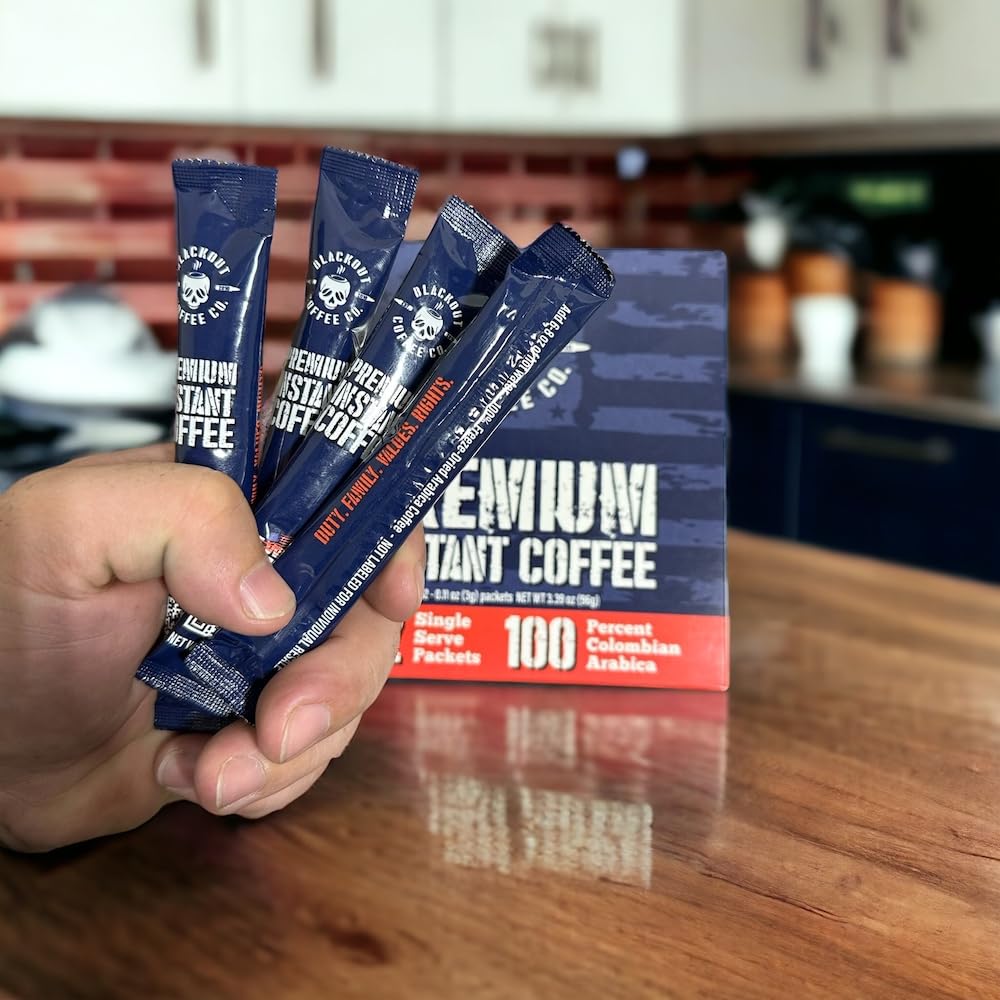 Just $25.95 Responsible Blackout Coffee Colombian Arabica Instant Coffee, Strong Aromatic, Fresh Roasted in the USA, Premium Coffee Single Serve Packets, 32 Count on Amazon