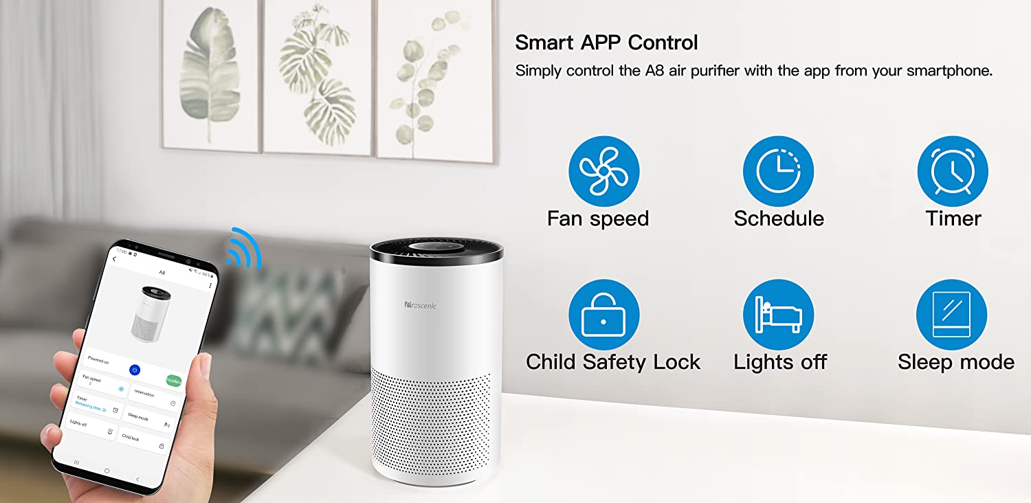 Proscenic A8 Smart WiFi Air Purifier for Home with H13 True HEPA Filter