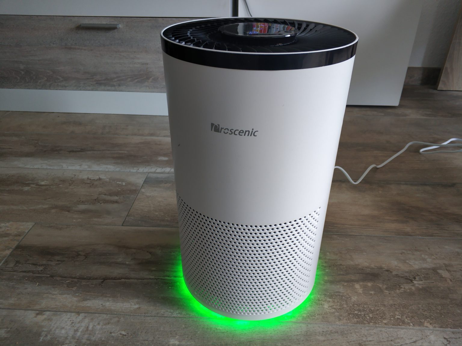 CE mark, EU charging cable and fast shipping via Amazon: Proscenic knows what to look out for if you want to sell devices in Europe and Germany. Design and material quality also play a role for German consumers. At least the round shape of the A8 air purifier looks good, but the plastic used could be of higher quality. In terms of design, you can’t make any compromises, it just looks like a typical air purifier.