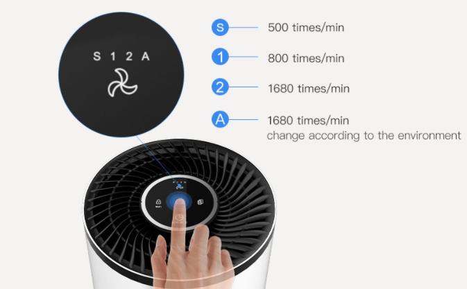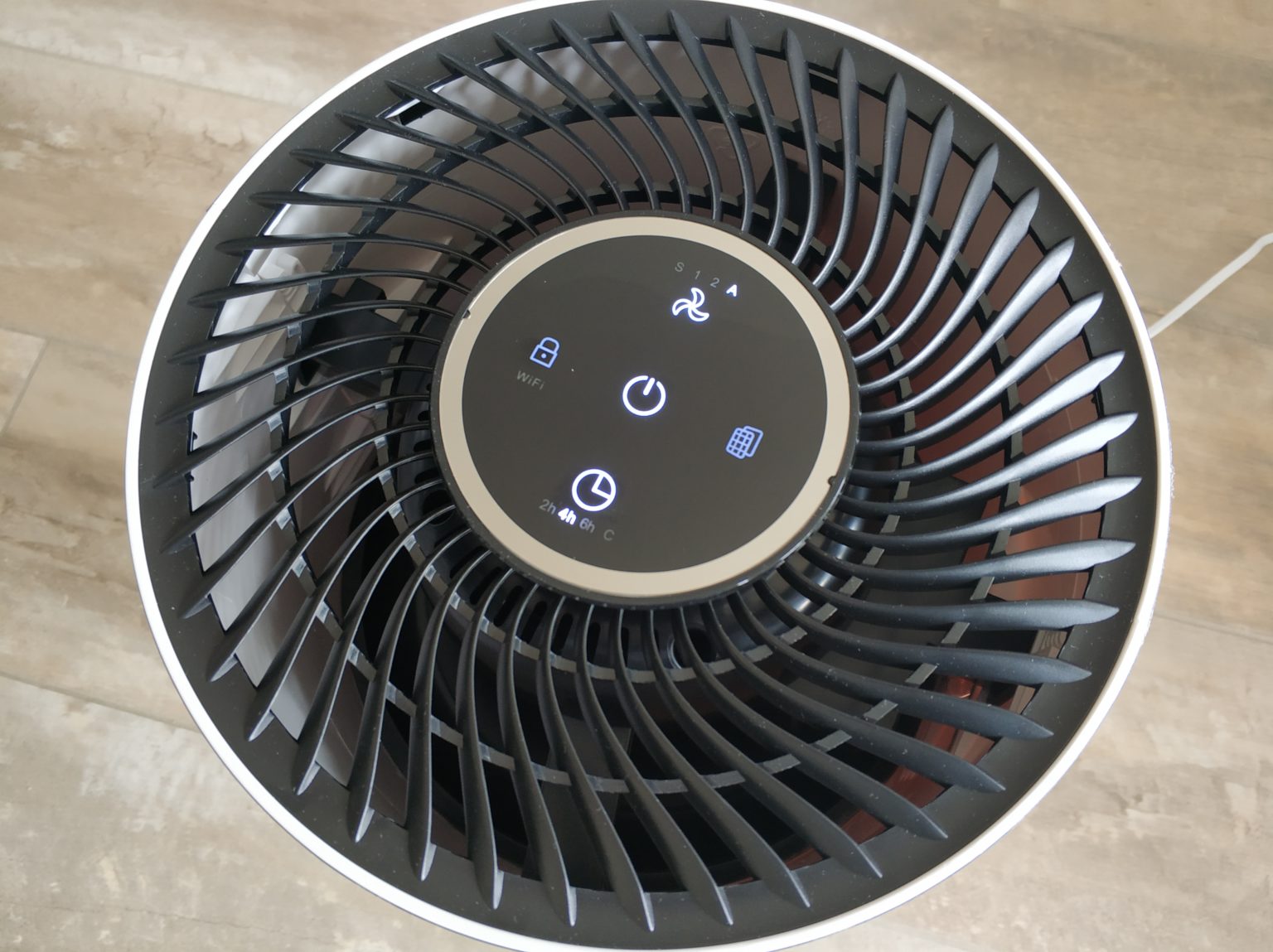 The “S” stands for “sleep mode” (at least translated), “1” describes the second highest and “2” the highest level. With the setting on “A” you can let the air purifier do its own thing. In sleep mode, the operating volume is a really pleasant 24 dB, but at level 2 it is much higher 60-70 dB (depending on where you measure on the cleaner). I found my way around best with level 1 when I was in the same room during the test phase, with level 2 you should at least change rooms from my point of view.