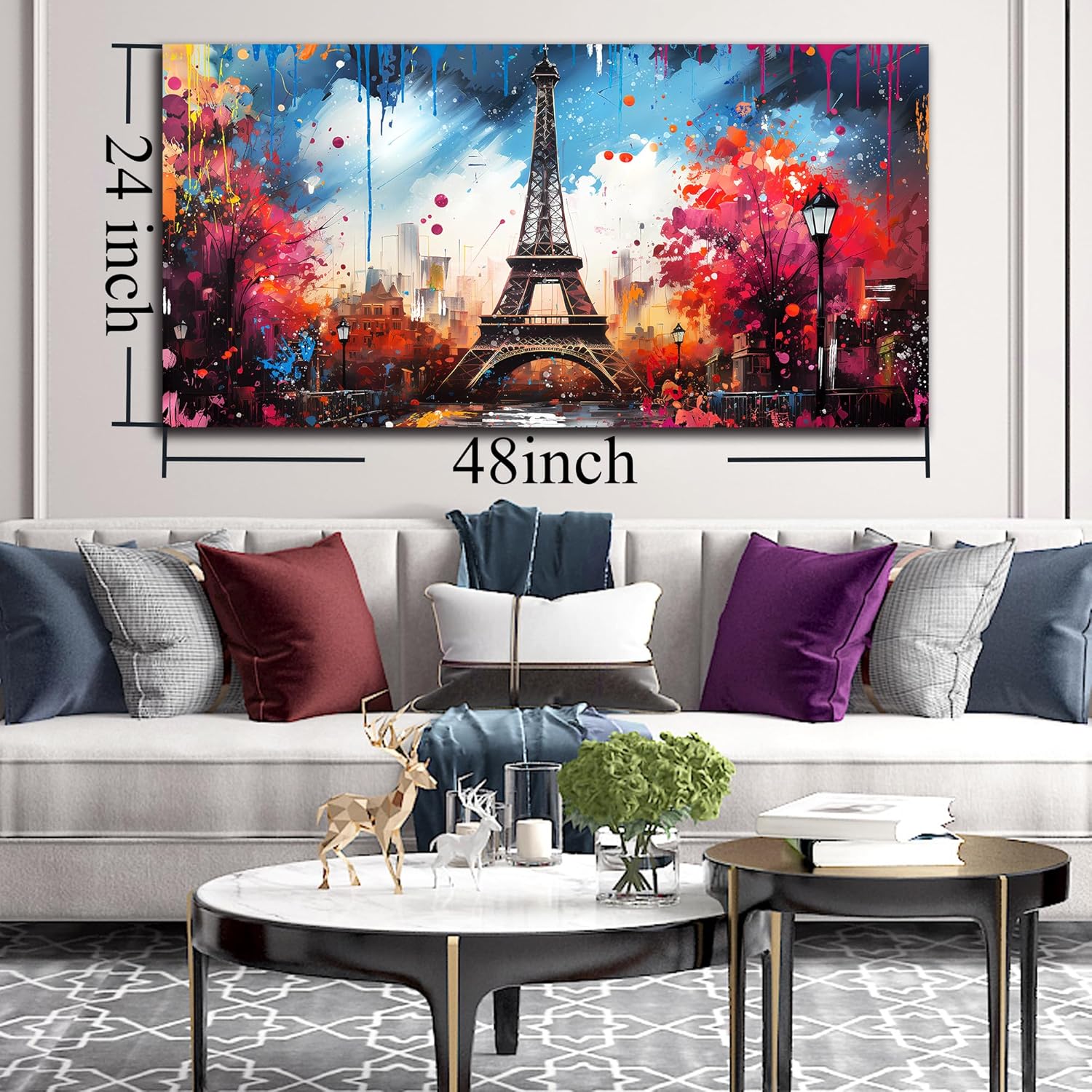 Save $69.99 Luxurious Large Canvas Wall Art Paris Eiffel Tower Decor Modern Graffiti Canvas Prints Ready to Hang for Living Room Bedroom Framed Home Decor Size 24×48 on Amazon