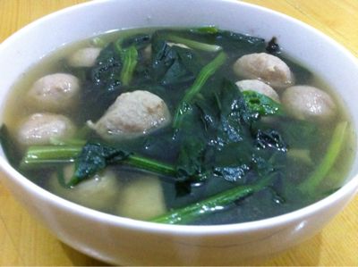 Spinach pellet soup— Chinese food nutritious healthy recipe