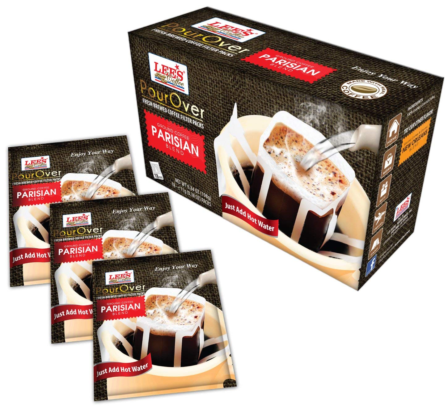Today’s Deal $17.50 Trendsetting 1 Pack – Lee’s Coffee Pourover Fresh Ground Parisian Filter Packs – 18 Bags per Box on Amazon