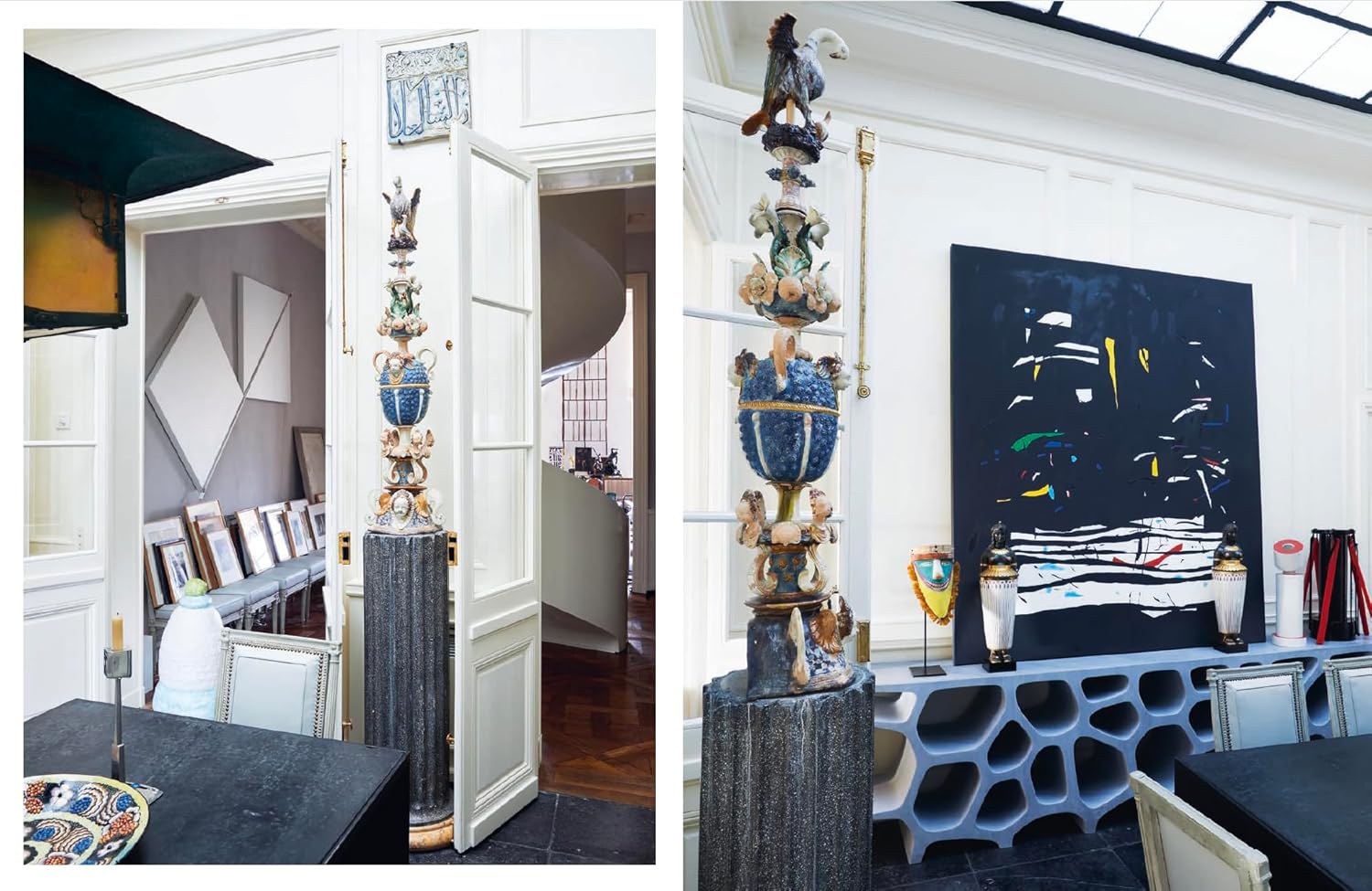 However inspiration strikes, a Paris interior will rise magnificently to the occasion, as demonstrated by internationally-acclaimed Jacques Grange’s contemporary apartment situated in a Regency palace, the innovative rustic modernism of Studio KO, Vincent Darré’s breathtaking painted wall designs, which combine XVIII-century and 1920s styles, and Jacopo Etro’s architecturally exquisite space, enhanced by mid-century décor and filled with objets d’art.