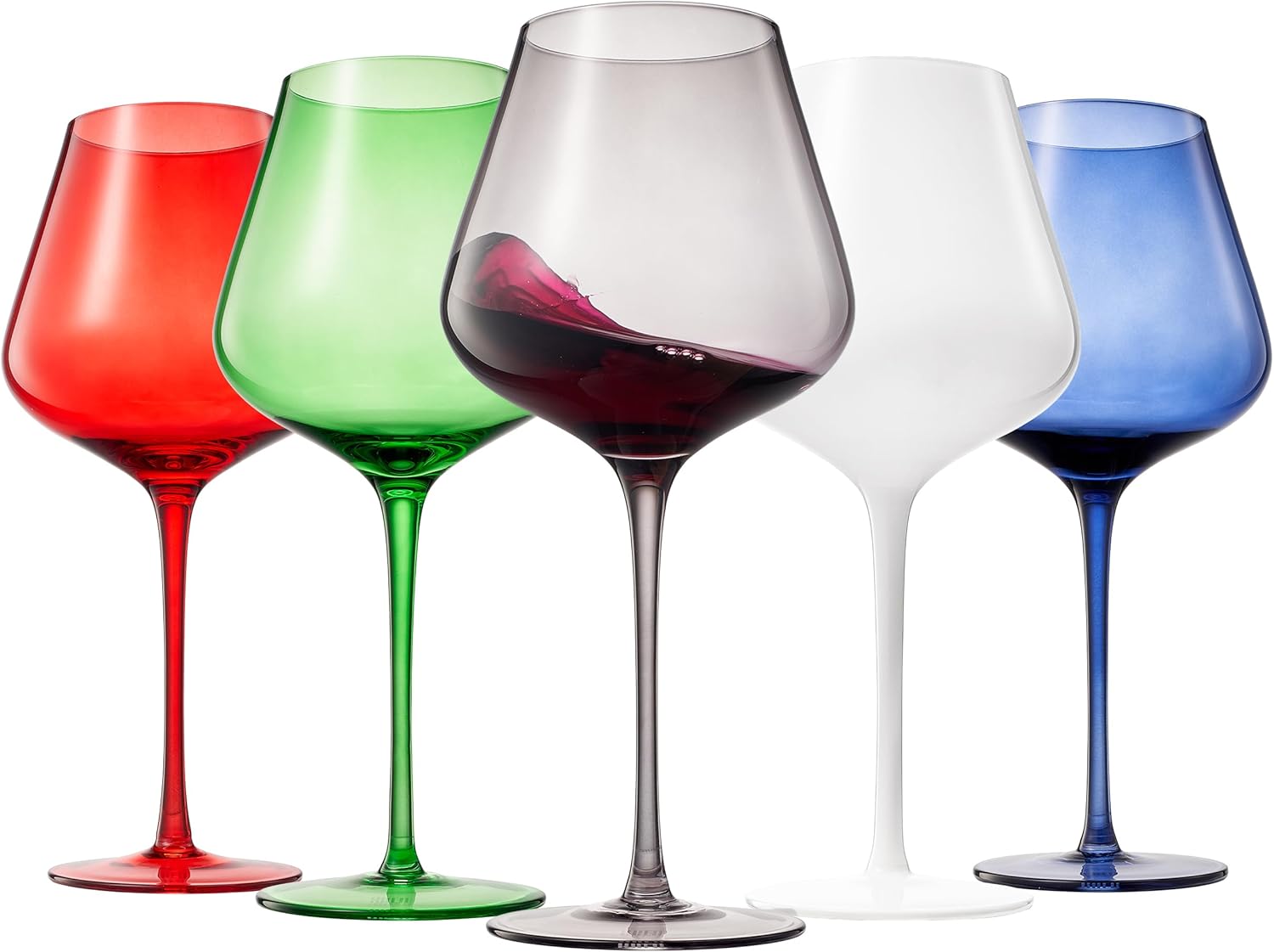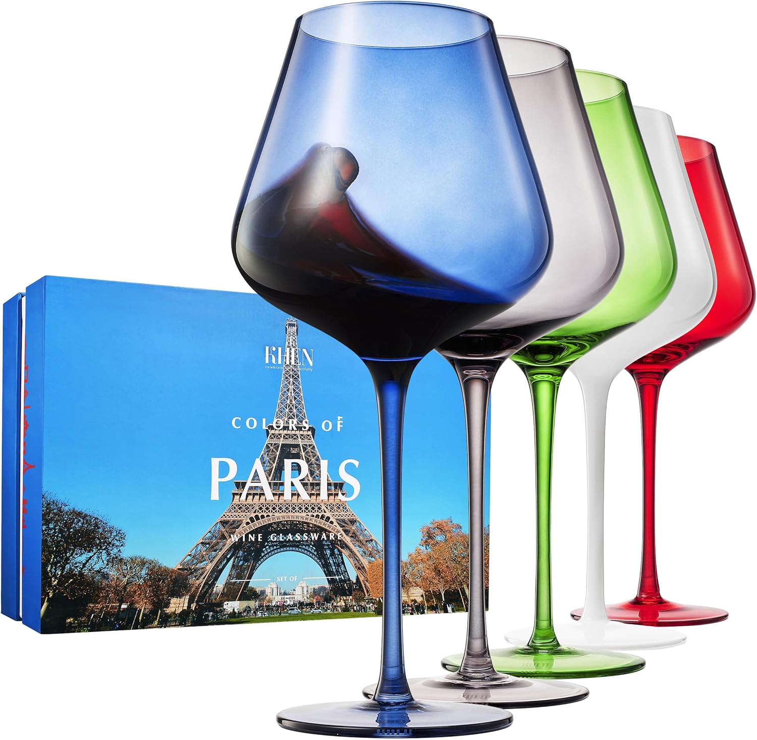 仅需 $59.95 多功能的 美国亚马逊Amazon Colors of Paris 法国酒杯,装饰艺术彩色酒杯套装,20 盎司和华丽礼品盒 | 5 件套 |旅行者、探险家、法国礼品酒具,适合红葡萄酒和白葡萄酒,风格独特,高柄