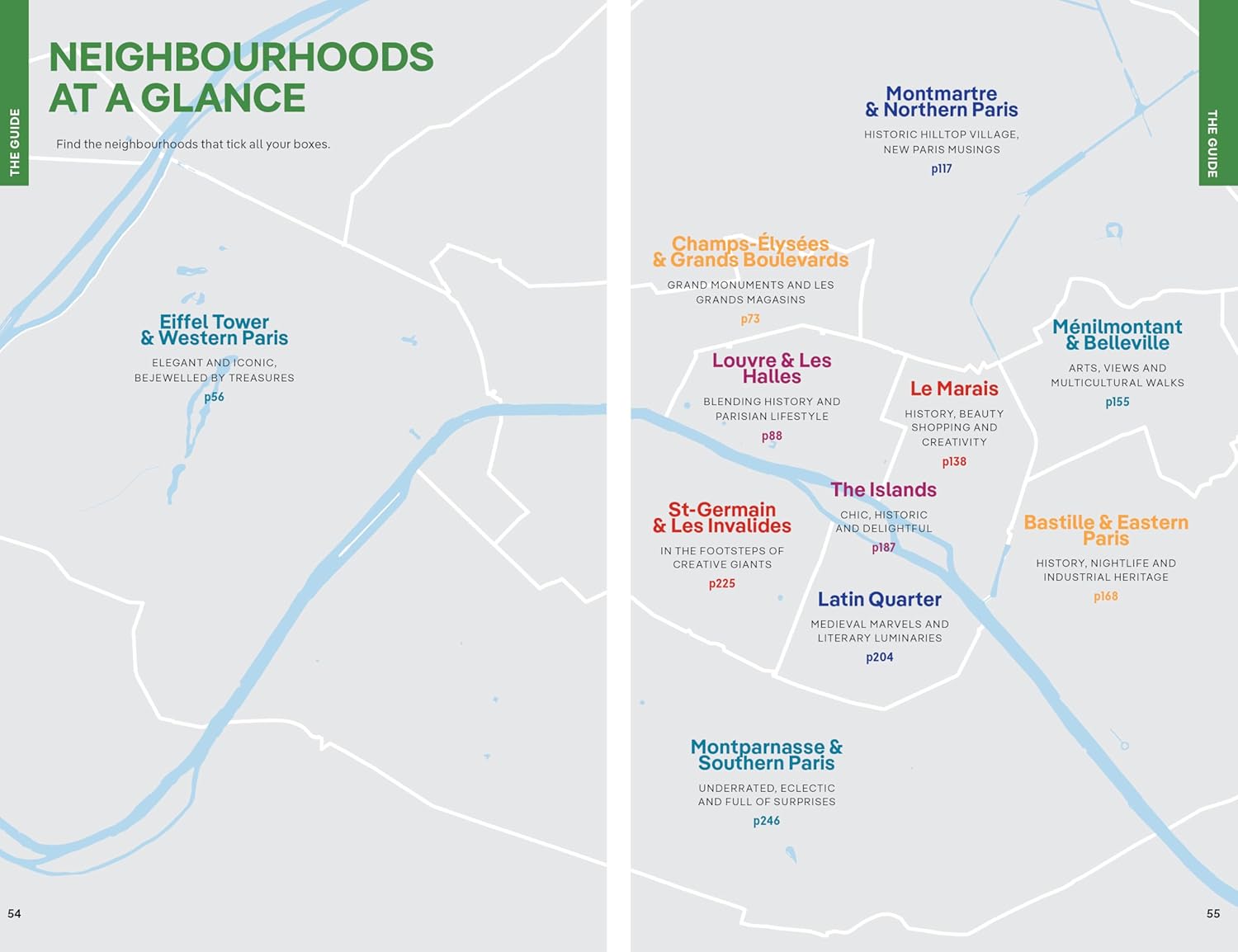 Review: Attractive layout and photography do not make up for some serious structural issues. The editing leaves much to be desired. A terrible index lacks many of the most popular green spaces, such as Bois de Boulogne, Jardin des Plantes and Jardin du Luxembourg. The table of contents is hidden 53 pages inside the book and the pull-out map only covers the inner 10 arrondissements. Buy this guide well in advance of your trip and read before you go to help plan your stay and familiarize yourself with the book itself. I cracked it open on the flight over and found it difficult to use.