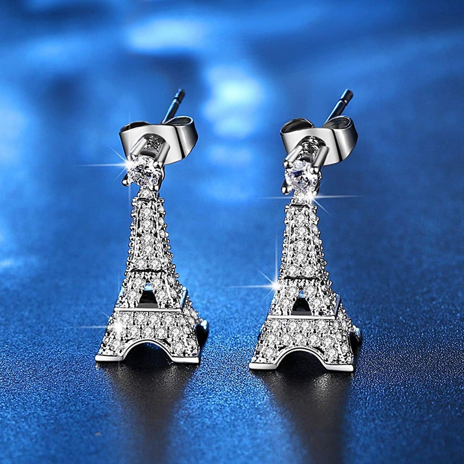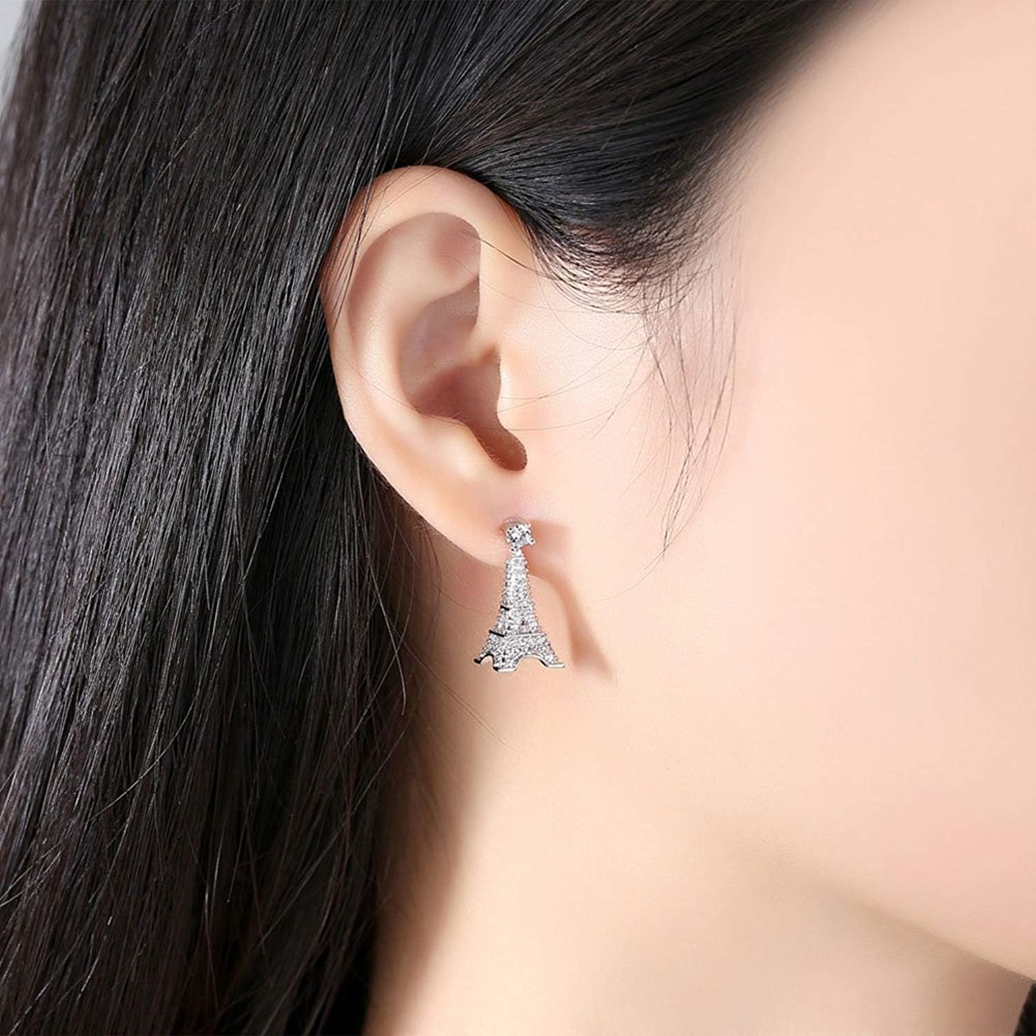 立即购买 $11.99 引领潮流的 心形钥匙巴黎埃菲尔铁塔吊坠项链/耳环长女式女孩 – 银色首饰(耳环) 美国亚马逊Amazon