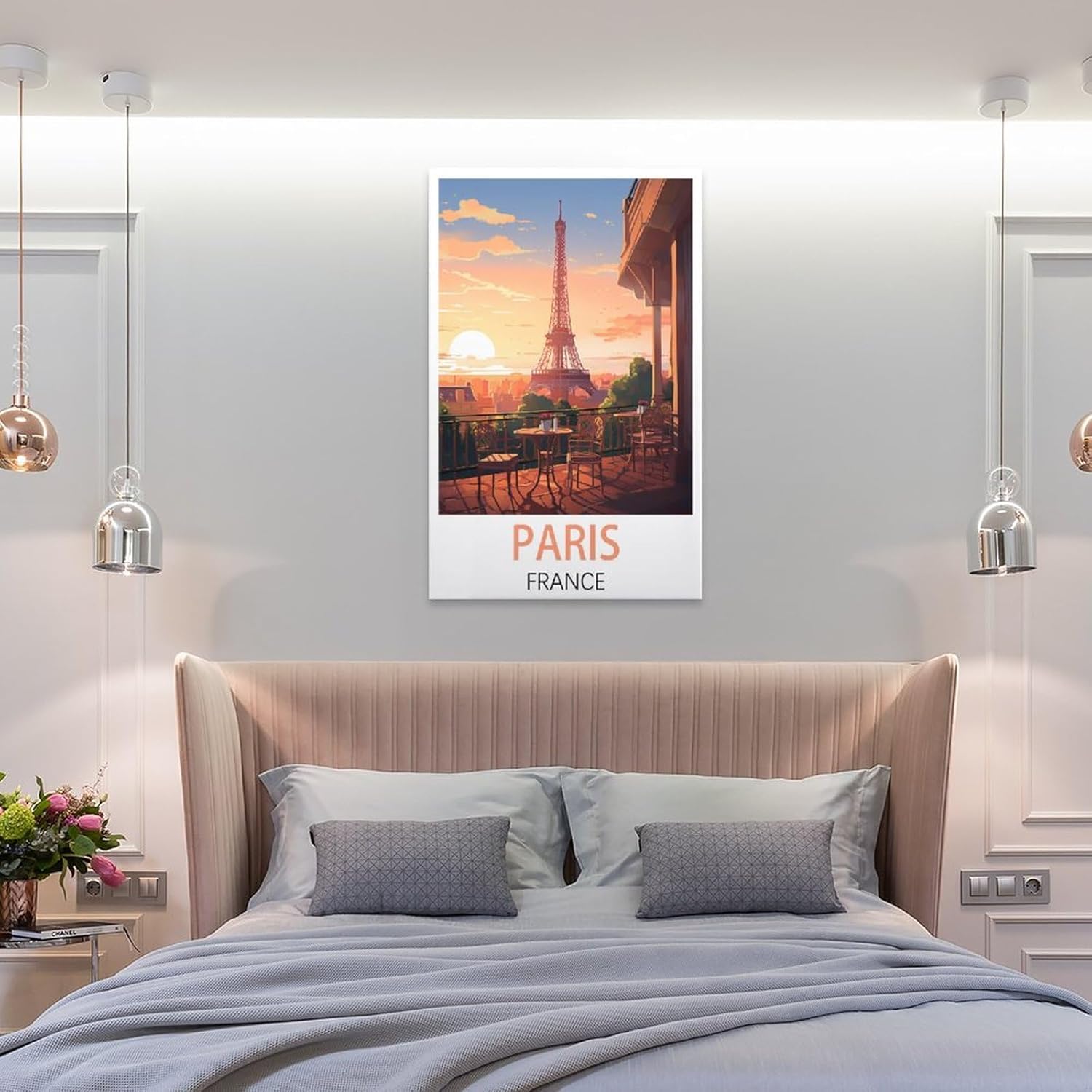 Write an sale copywriter in Chinese using the AIDA (Attention, Interest, Desire, Action) formula about KmoNo 巴黎法国复古旅行海报 08×12 英寸(20×30 厘米)海报装饰画帆布墙壁艺术客厅海报卧室