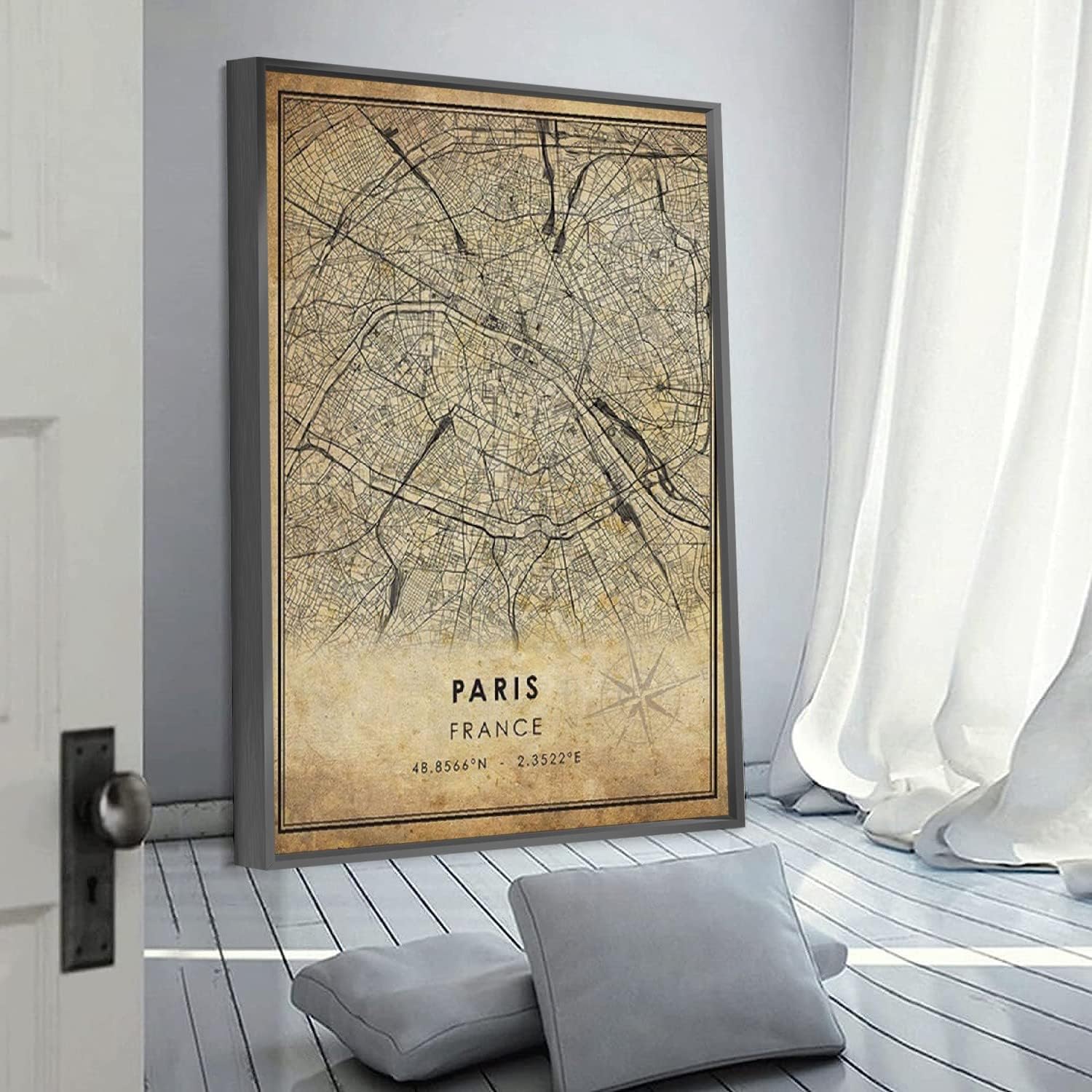 Write an innovative article with thousand words in Chinese about review 巴黎复古地图法国地图艺术城市路线图海报装饰艺术帆布客厅绘画卧室艺术品墙壁装饰(16×24 英寸(40×60 厘米),黑色)