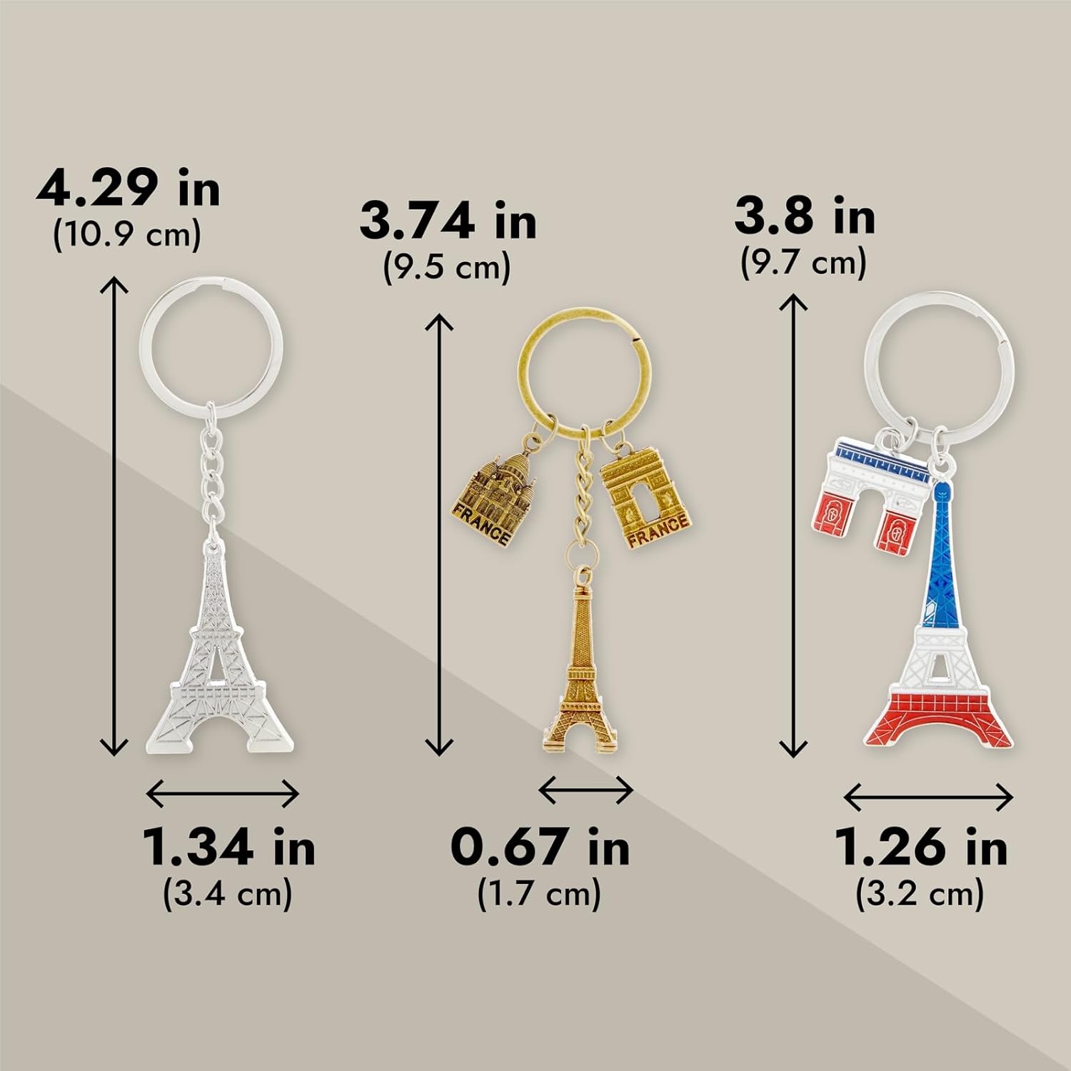 Review: J’aime Paris! And these are perfect little keychains avec la tour Eiffel et l’arc de Triomphe et le mots Paris. Cute. Perfect size. You can see two of my keys that I use and the size of the key chains. Seem to be constructed we enough. Great price! Nicely packaged and would be wonderful gifts. They arrived quickly too.