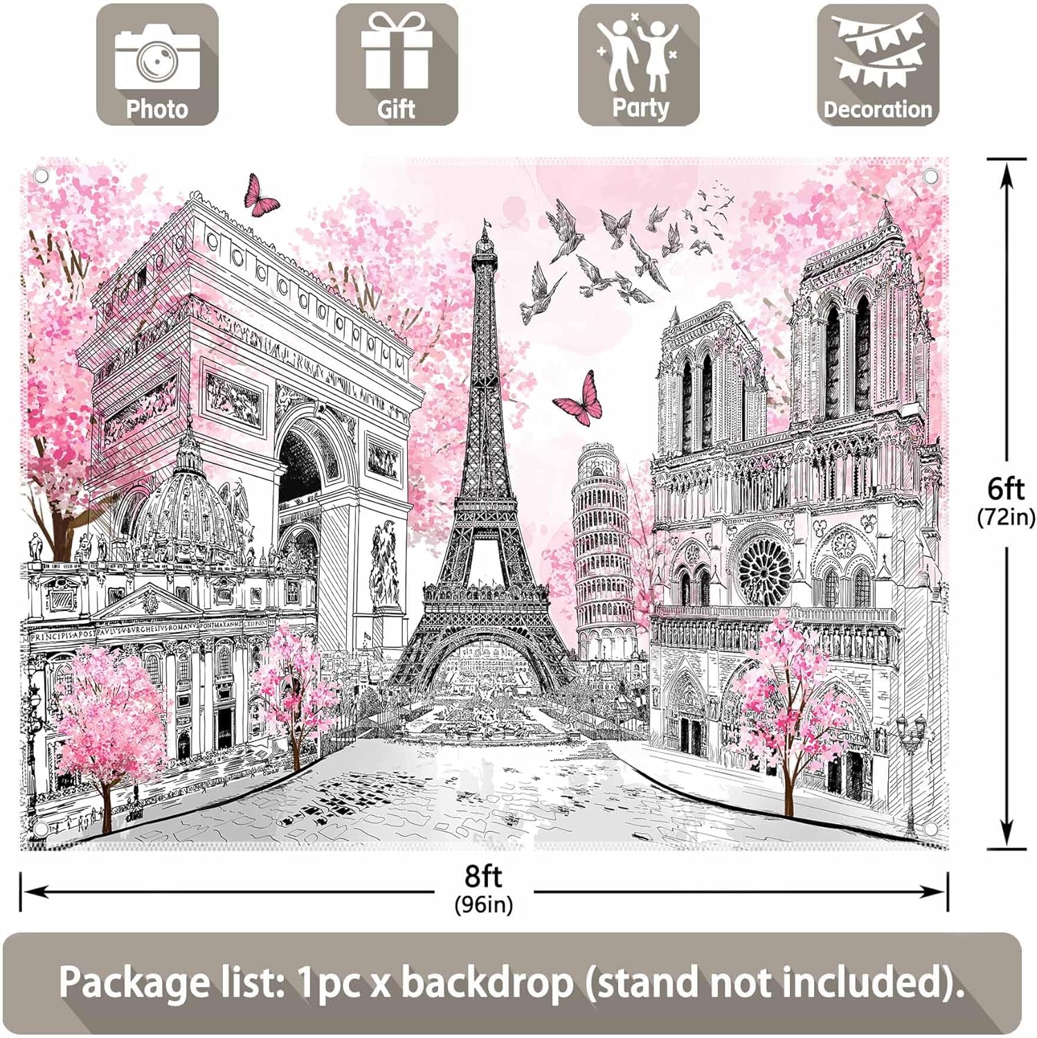 Write an innovative article with thousand words in Chinese about review 8×6 英尺织物埃菲尔铁塔背景巴黎风景摄影背景欧洲城市粉红色花朵树木派对装饰品照相亭道具