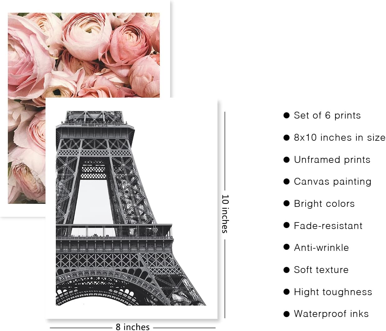 Write an innovative article with thousand words in Chinese about review Admmixoo 时尚墙壁艺术印刷品粉色帆布艺术海报墙壁装饰复古时尚女士香水巴黎玫瑰埃菲尔铁塔图片适合家居女孩卧室装饰(8 英寸 x 10 英寸无框)