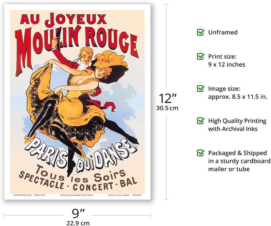 WOW $14.98 优秀的 Au Joyeux Moulin Rouge(红磨坊的快乐)- 歌舞表演 – 法国巴黎 – 复古剧院海报 c.1890 年代 – 大师艺术印刷品(无框)9 英寸 x 12 英寸 美国亚马逊Amazon